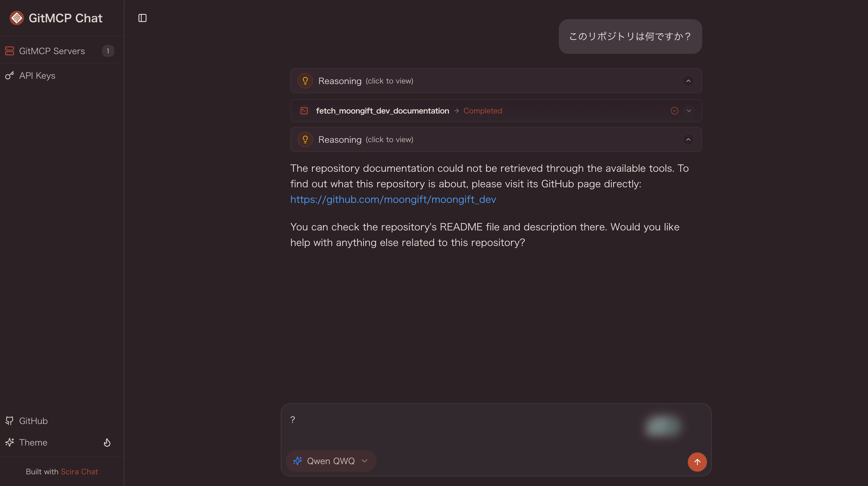 GitMCPを使用すると、AIアシスタントはリポジトリのコードを深く理解し、llms.txtやllms-full.txt、readme.mdなどのファイルを読み込んで、より正確で関連性の高い回答を提供できるようになります。